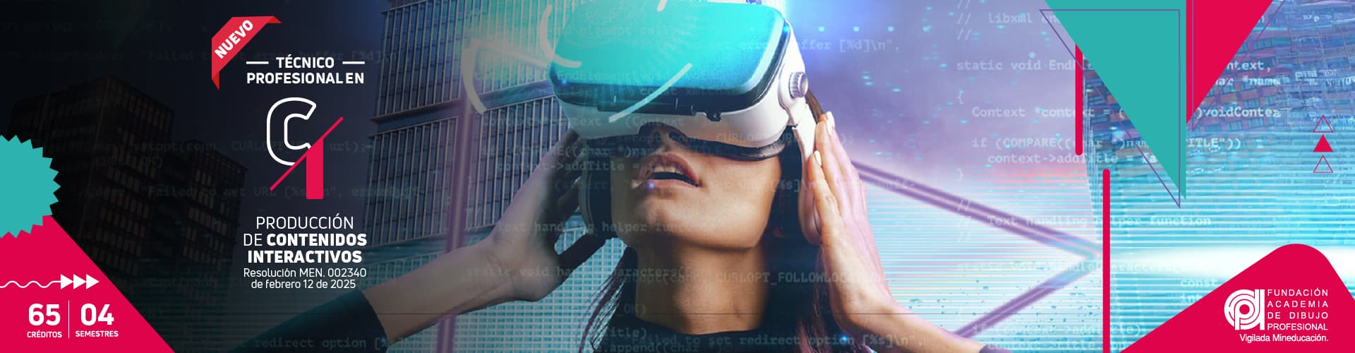 La FADP abre las puertas con un nuevo y fascinante programa de 4 semestres: el Programa Técnico Profesional en Producción de Contenidos Interactivos es un acceso al apasionante mundo de la multimedia donde aprendes a crear desde cero a través de procesos técnicos, recursos innovadores en áreas como: